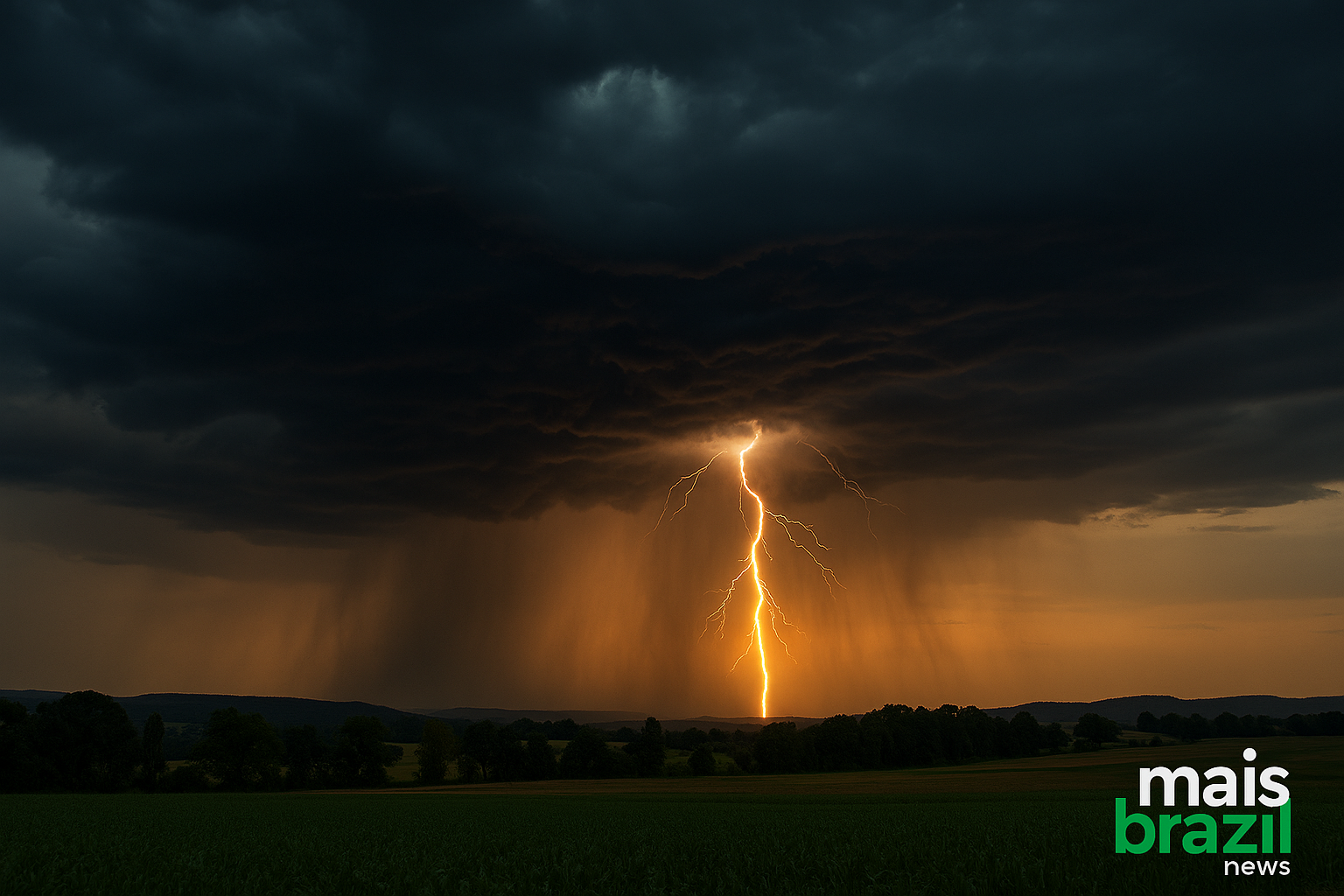 O fenômeno está associado à chegada de uma frente fria vinda da região Sudeste, que deve provocar fortes pancadas de chuva, rajadas de vento de até 50 km/h e possibilidade de queda de granizo em pontos isolados.