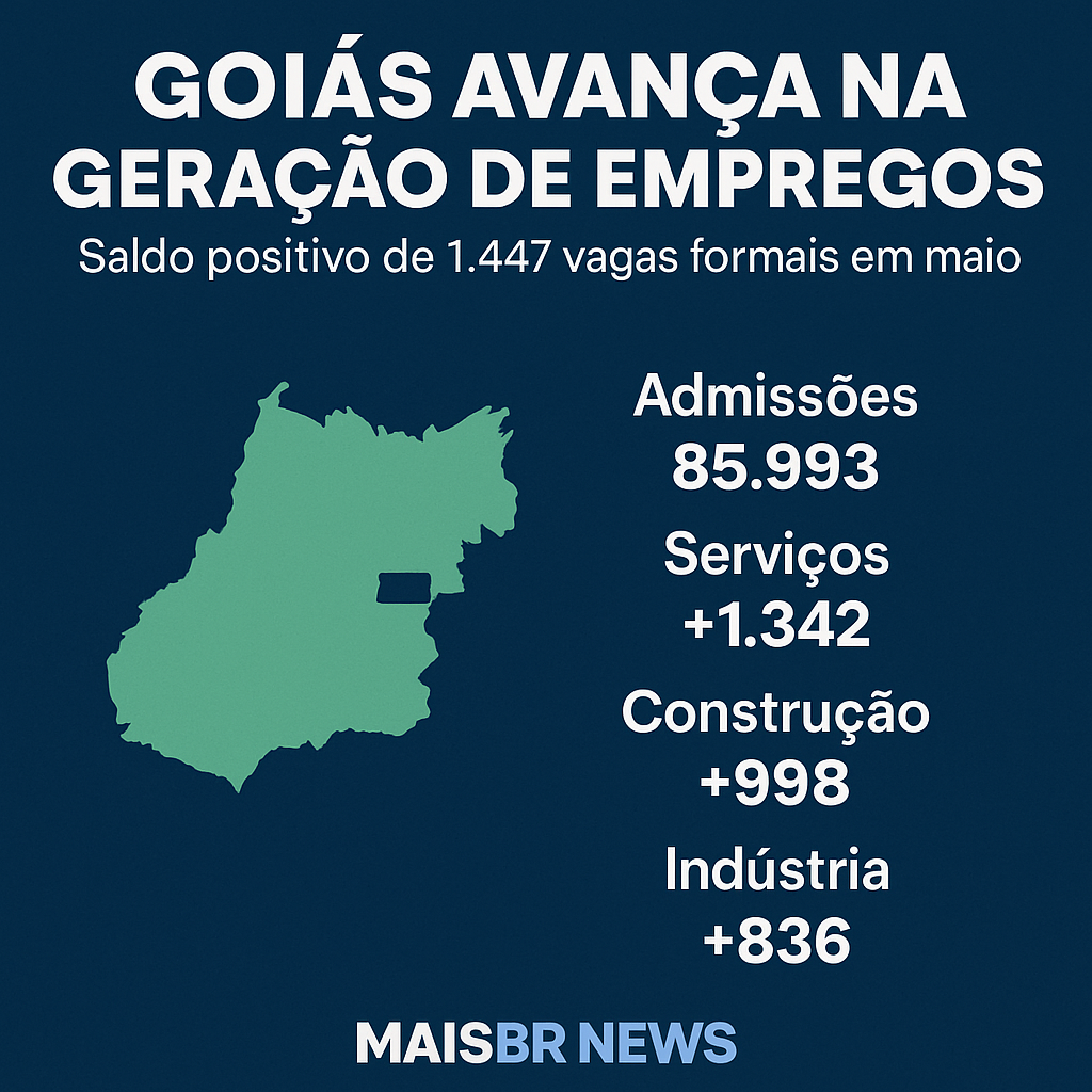 Em meio a um cenário econômico desafiador em várias partes do país, Goiás tem motivo para comemorar. Segundo os dados do Novo Caged (Cadastro Geral de Empregados e Desempregados), divulgados pelo Ministério do Trabalho, o estado registrou em maio um saldo positivo de 1.447 empregos formais.