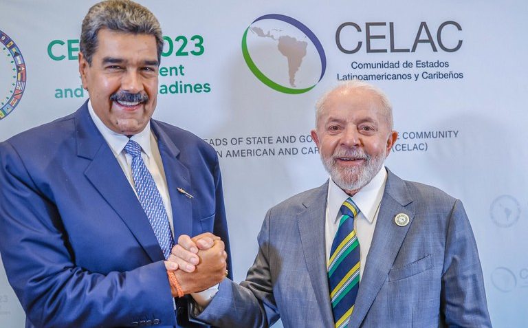 Infelizmente, a República não produziu um Pedro 2º para rebater no nascedouro a ideia de Maduro de invadir Essequibo, diz o articulista; na imagem, o presidente da Venezuela, Nicolás Maduro (esq.) e o presidente do Brasil, Luiz Inácio Lula da Silva (dir.)