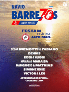 O Navio Barretos 70 Anos reúne grandes nomes da música sertaneja e artistas que marcaram gerações. Entre os confirmados: